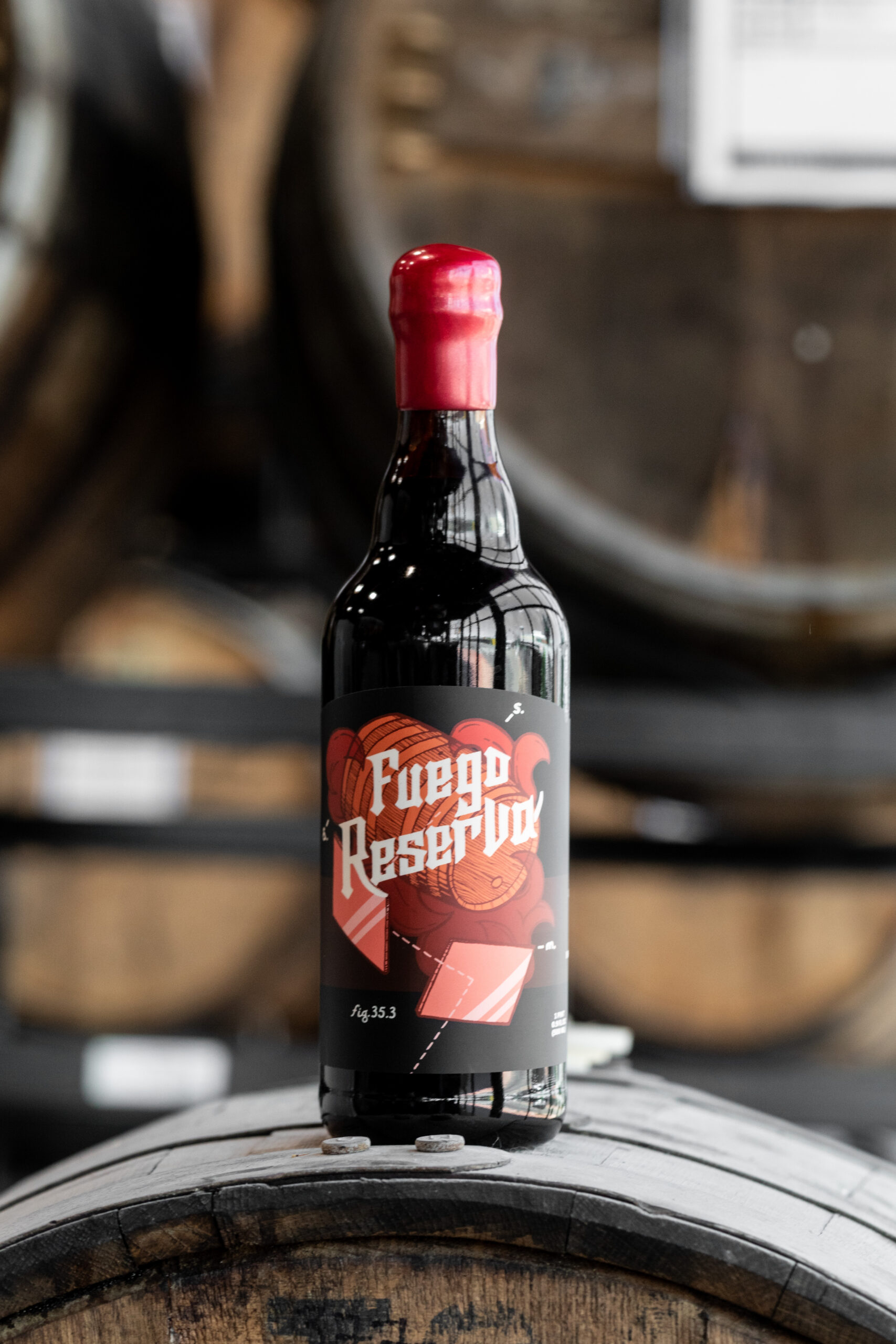 Back in the fall of 2019 we were fortunate enough to host our friends at J Wakefield Brewing for an Imperial Stout brew. Most of that batch was blended with a small amount of another base stout aged in Mezcal Reposado barrels. We packaged it as Humo y Espejos & Humo y Espejos with Fuego. Fuego went on to win a gold medal at the Great American Beer Festival in 2021 in the chili beer category.Luckily, we had 2 oak barrels of this batch reserved for further aging. After an additional 12 months in oak (32 months total), we have something truly special. These were the last Woodford Reserve Chocolate Malted Rye barrels in our collection and we wanted to do something unique with them as a follow up to Humo y Espejos with Fuego. We settled on a blend of guajillo and two different types of chipotle peppers, some beautiful Filipino cacao nibs and a unique hybrid varietal of Mayan vanilla beans. The chilis were wood-fired in-house over a flame of bourbon barrel staves. These flavors come together seamlessly as raspberry chipotle jam, Mexican drinking chocolate, and ganache.